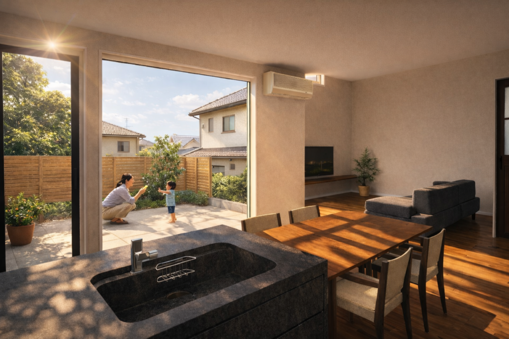 「リビングワークの断熱・気密・素材感」をまず体感してください。