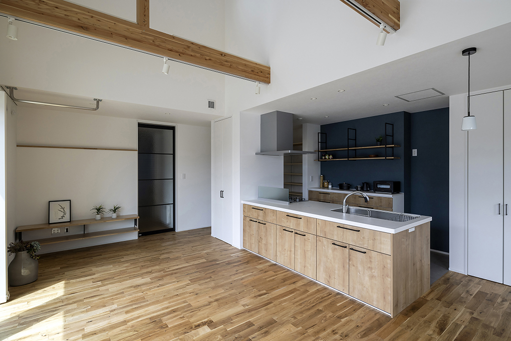 無駄を削ぎ落とし、上質な素材と設計で豊かさを育む暮らし。 階段や廊下を省いた効率的な間取りで居住空間を最大限に活用し、家族が自然に顔を合わせる温かなコミュニケーションを育みます。重心が低く災害に強い安心感に包まれながら、洗練された空間で本質的な豊かさを楽しむことができます。