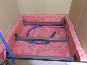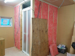 その後、更に壁際に断熱材を追加して、ユニットバスの設置準備は完了となります。