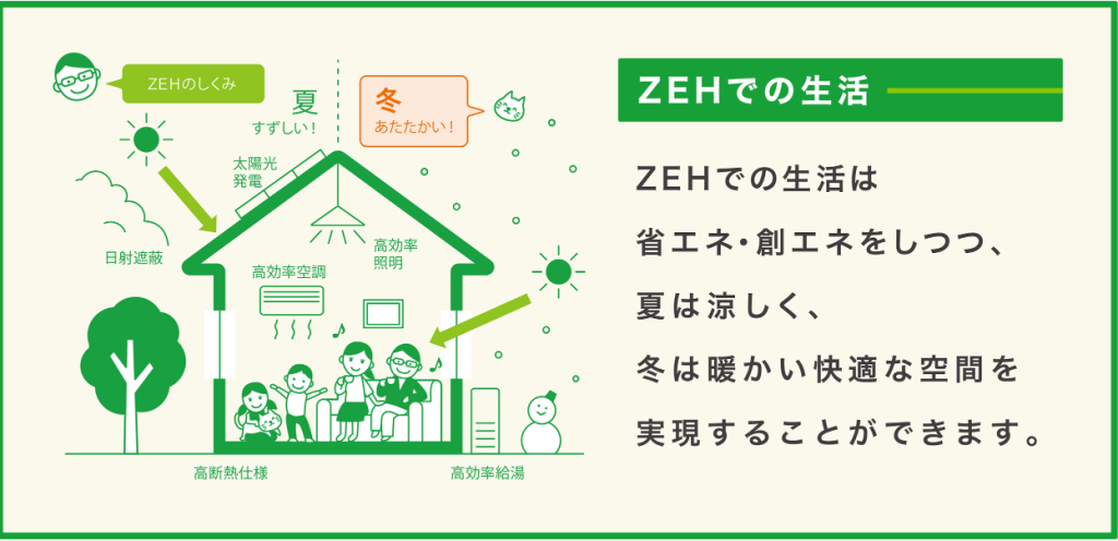 ZEHレベルの省エネ性能を持つ住宅に対して、最大150万円の補助が受けられる