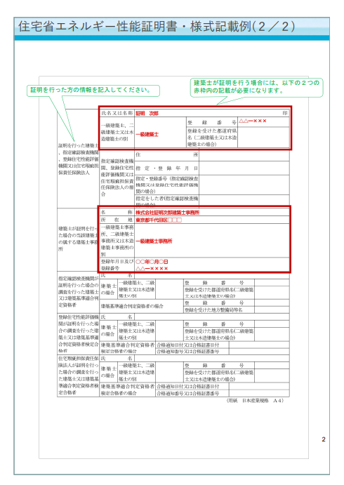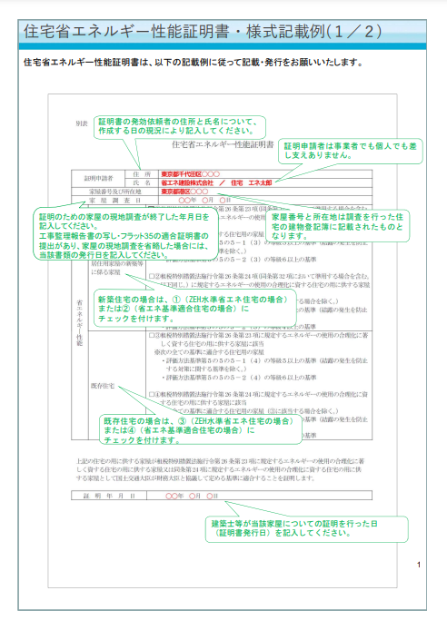 出典:国土交通省(住宅省エネルギー性能証明書・様式記載例(1/2)