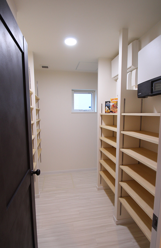 ▽1階の食品庫は、キッチンの並びにあり、便利な動線です