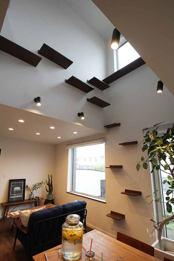 Nさまの「猫がキャットウォークでくつろいでいる所を眺めたい」というご要望から、家の中心にプランニングしました。