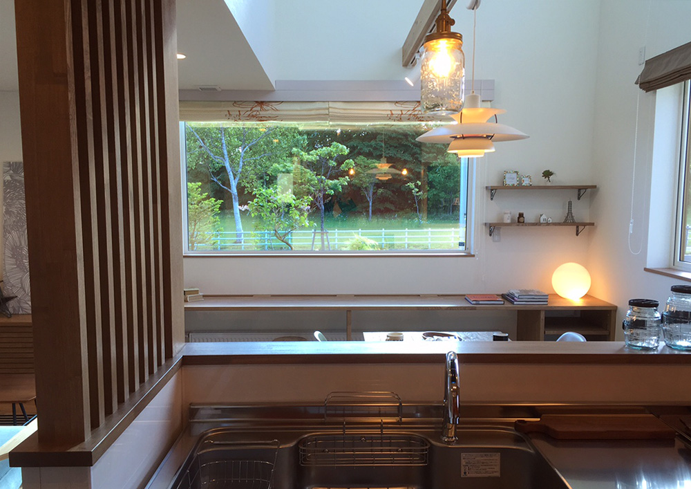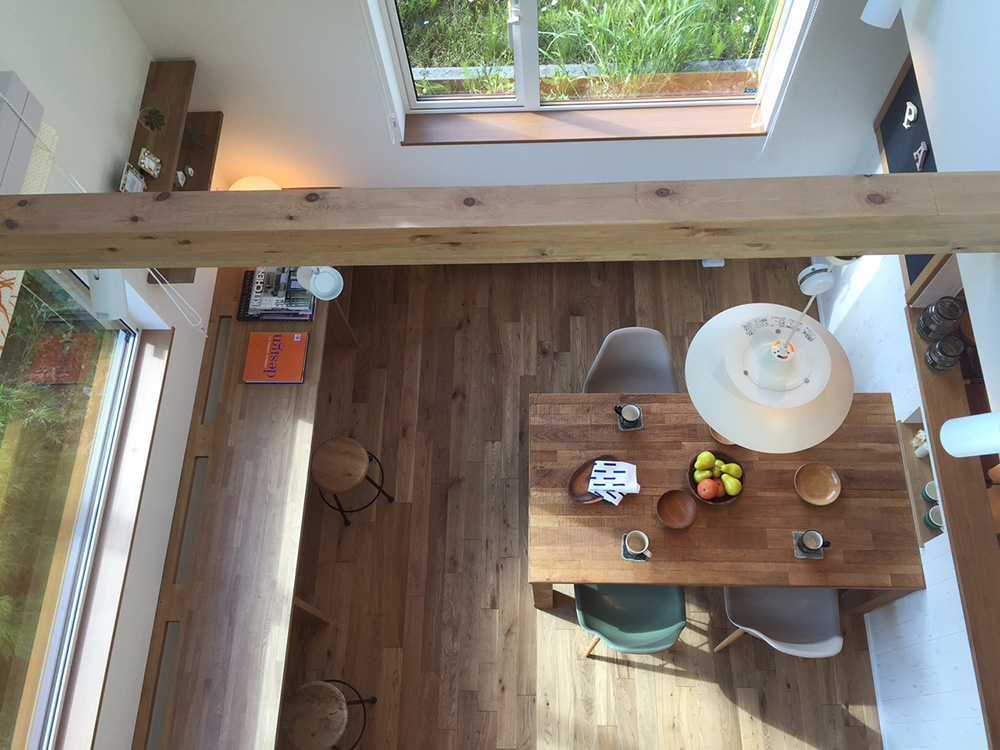 お子様たちのお絵かき遊びなど、自由に使える造作のテーブルが窓辺にあります