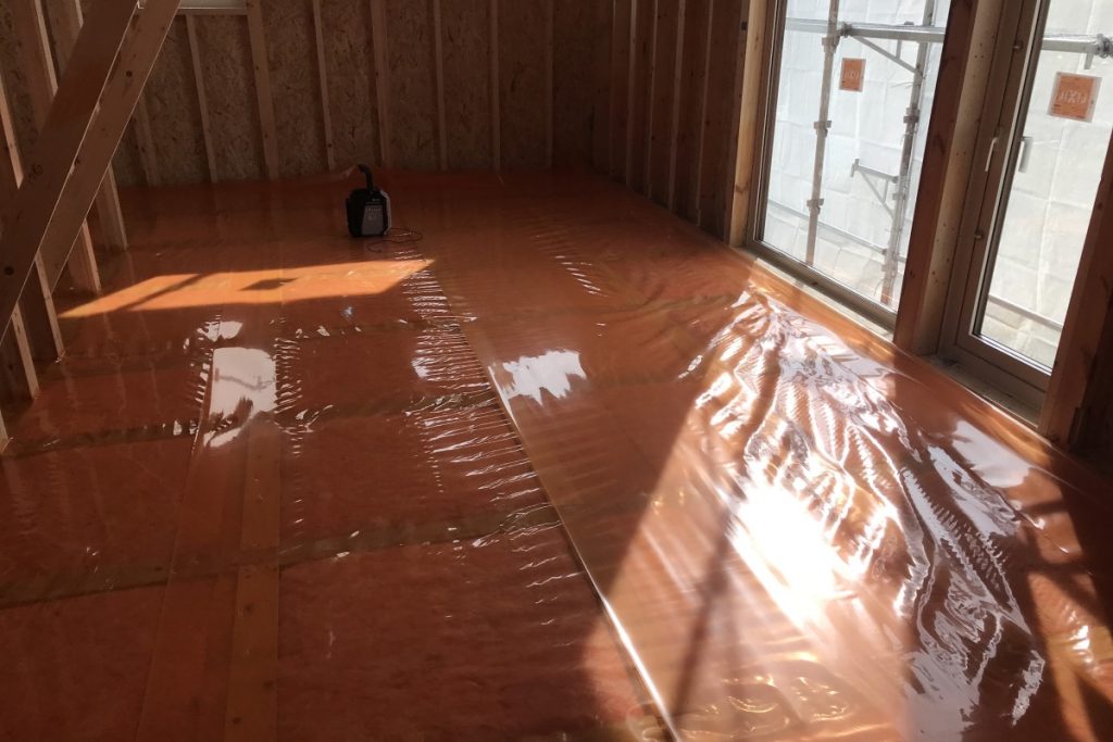 おうちの温かさをまもる気密シートも、水面と見間違えてしまうくらいきれいにはられています。