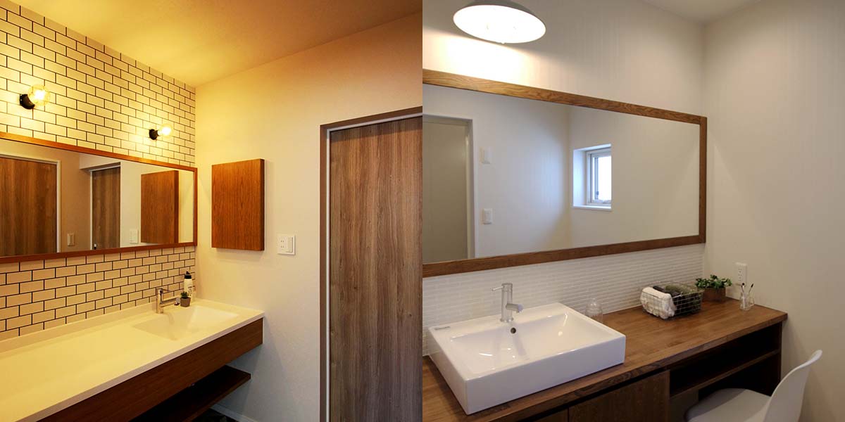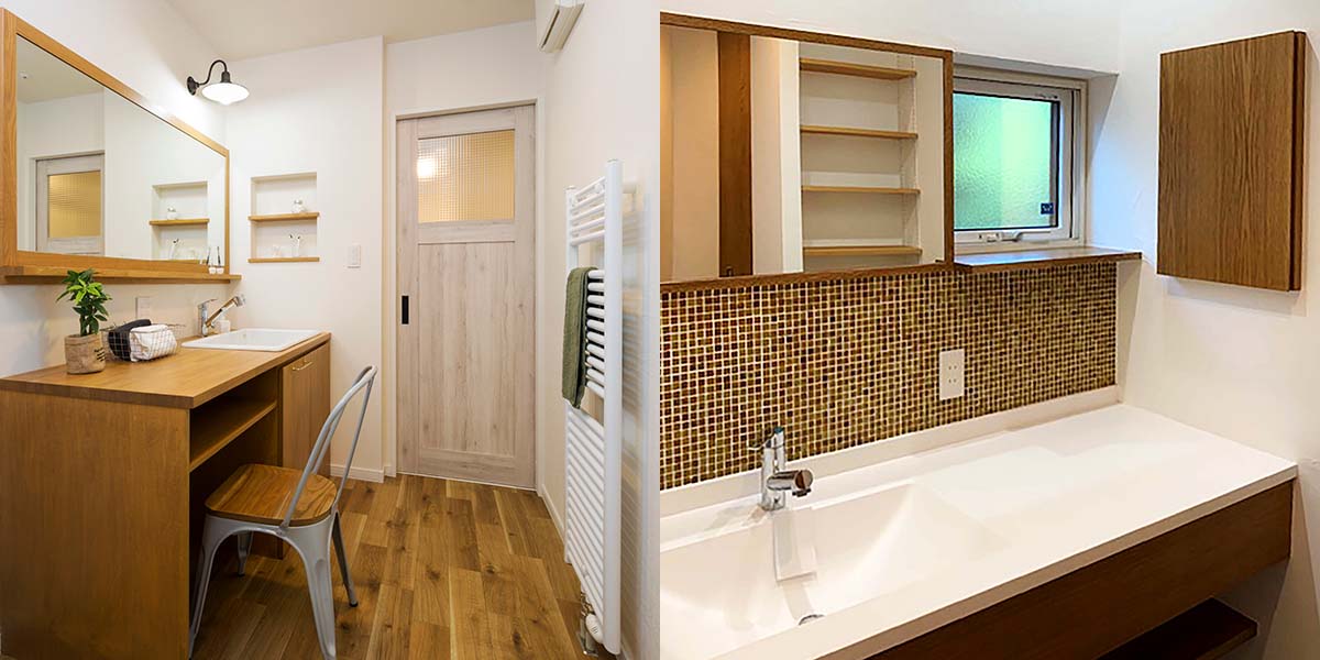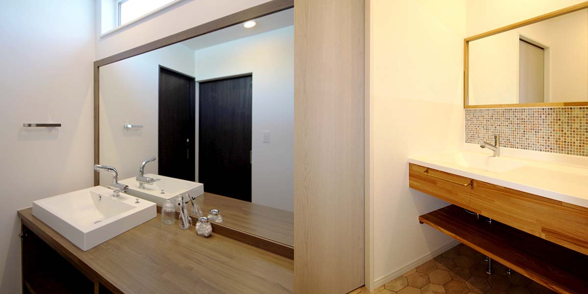 そして、Sさまが憧れていらっしゃったという、生活感のない造作洗面台は脱衣スペースと洗面台のスペースを区切ることで実現しました。