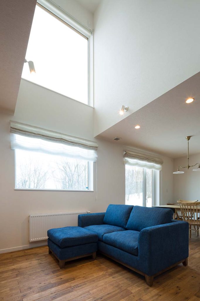 吹抜けの大きな窓から射しこむたくさんの光は、おうち全体を優しく満たしてくれます。