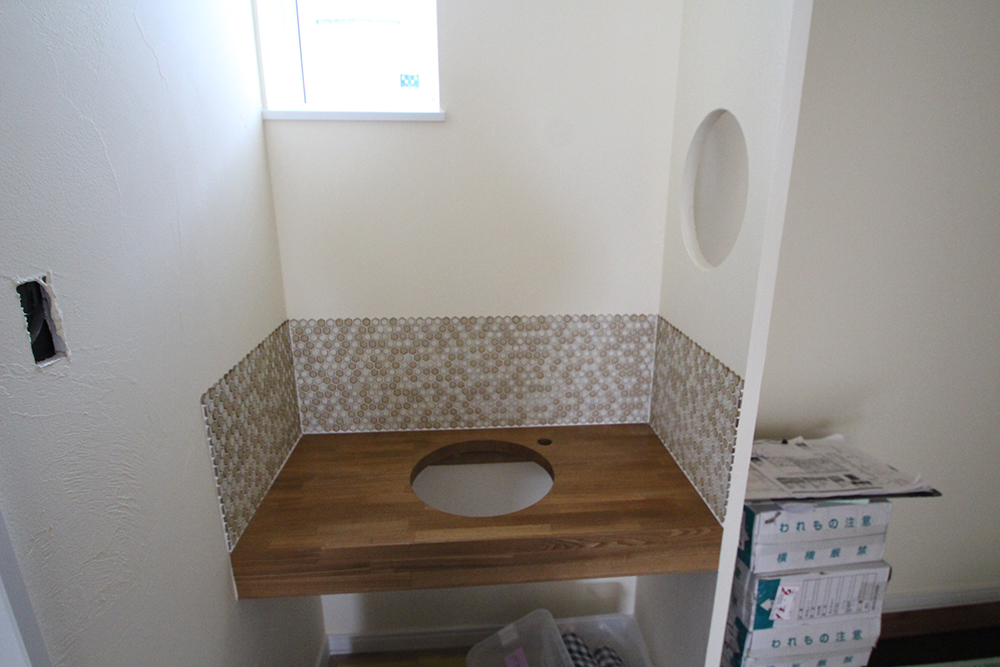 ▽造作の手洗い。タイルも貼られ、姿を現しつつあり、こちらも楽しみです。