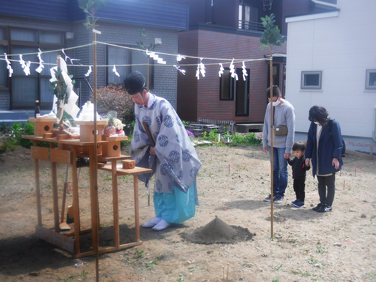 家づくりを始める決意表明として地鎮祭に臨まれたというSさま。