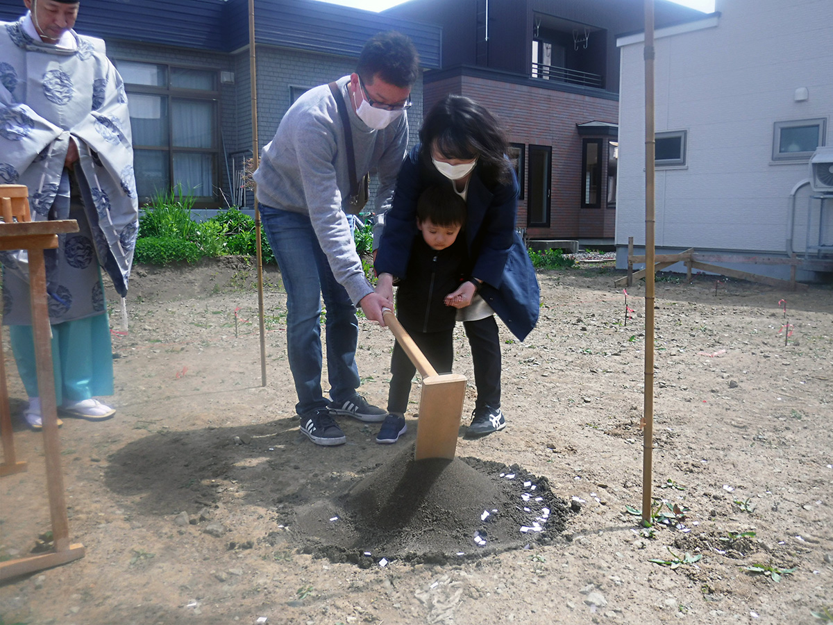 地鎮祭当日は快晴で、「憧れのマイホームを建てるんだ!」という
