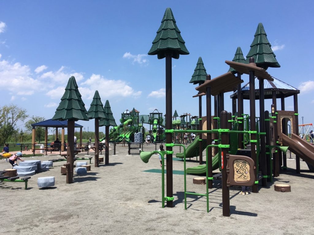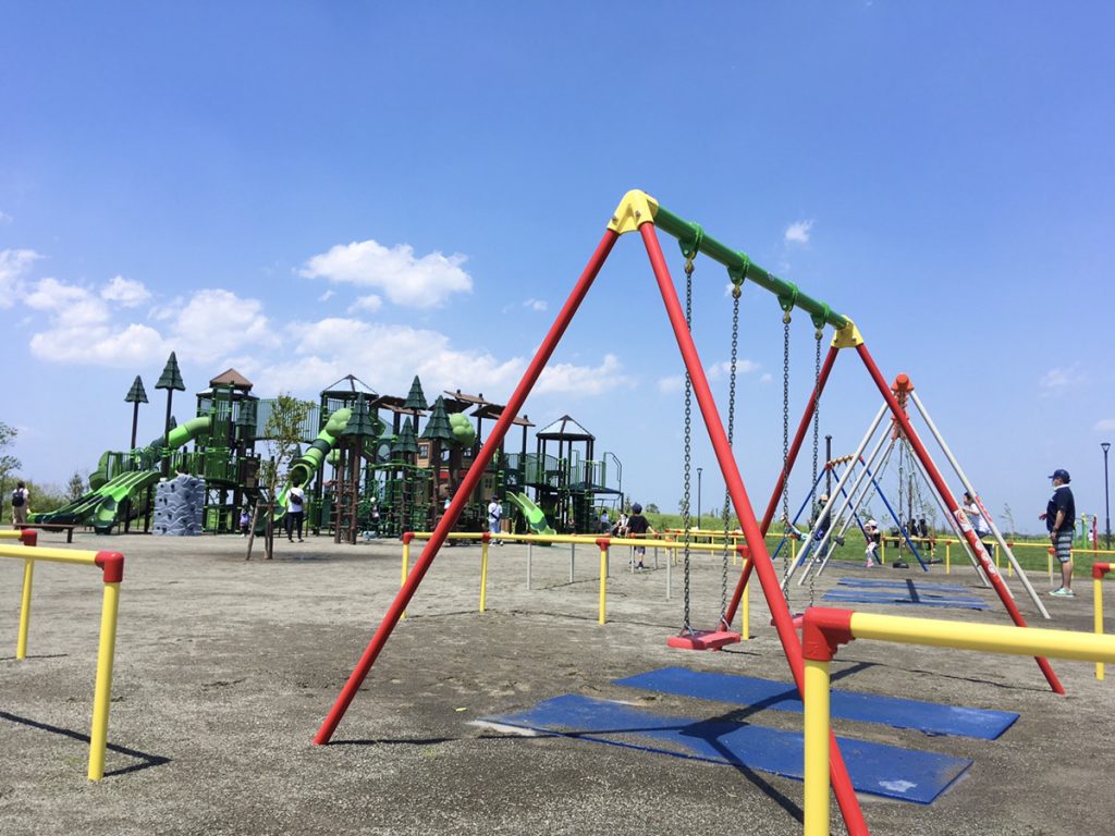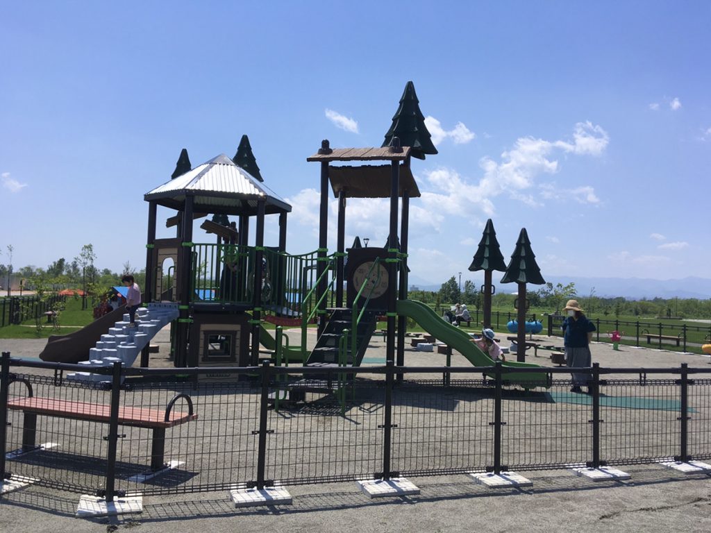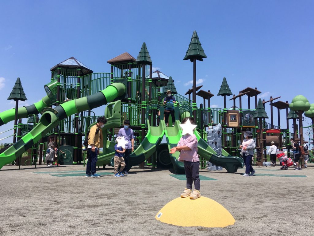 サブ駐車場からパークゴルフ場の横のまっすぐな道を歩き、見えてきたのは立派な大型遊具。