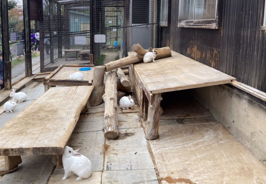 うさぎ小屋の中に入ることができるふれあい体験は300円です。