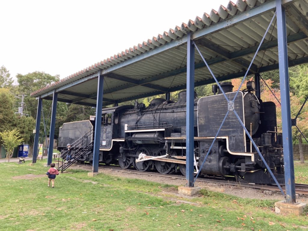 乗り物にハマっている息子は大きな機関車を見て大喜びしていました。