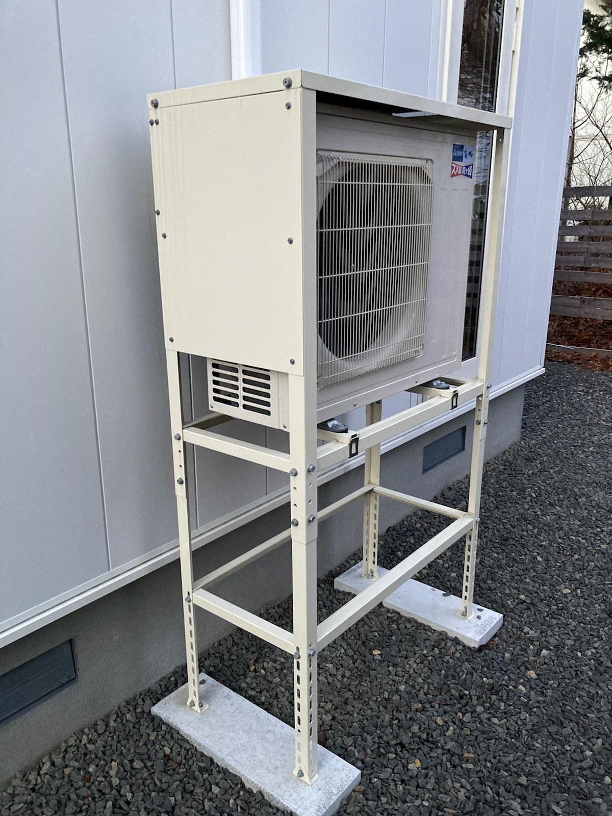 リビングワークでは、基本的に室外機を自立型で設置しています。