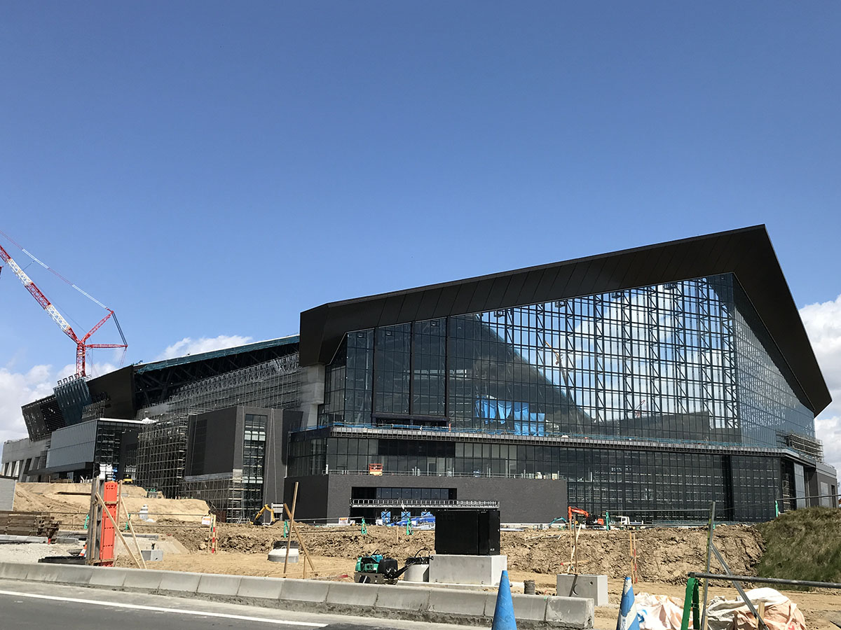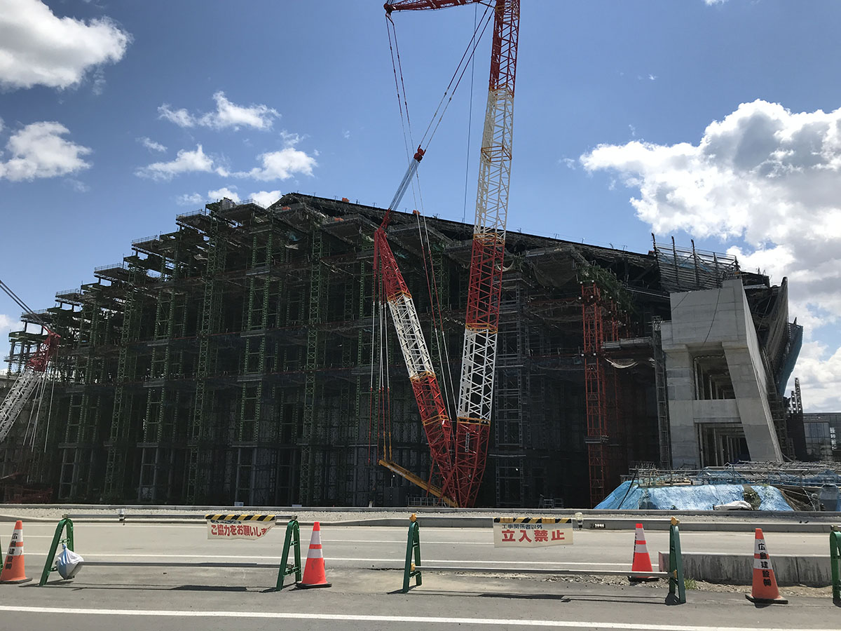 サイクリングロードから少しルートを外れて、今注目を集めている日本ハムファイターズの建設中ボールパークも近くで見ることができました。