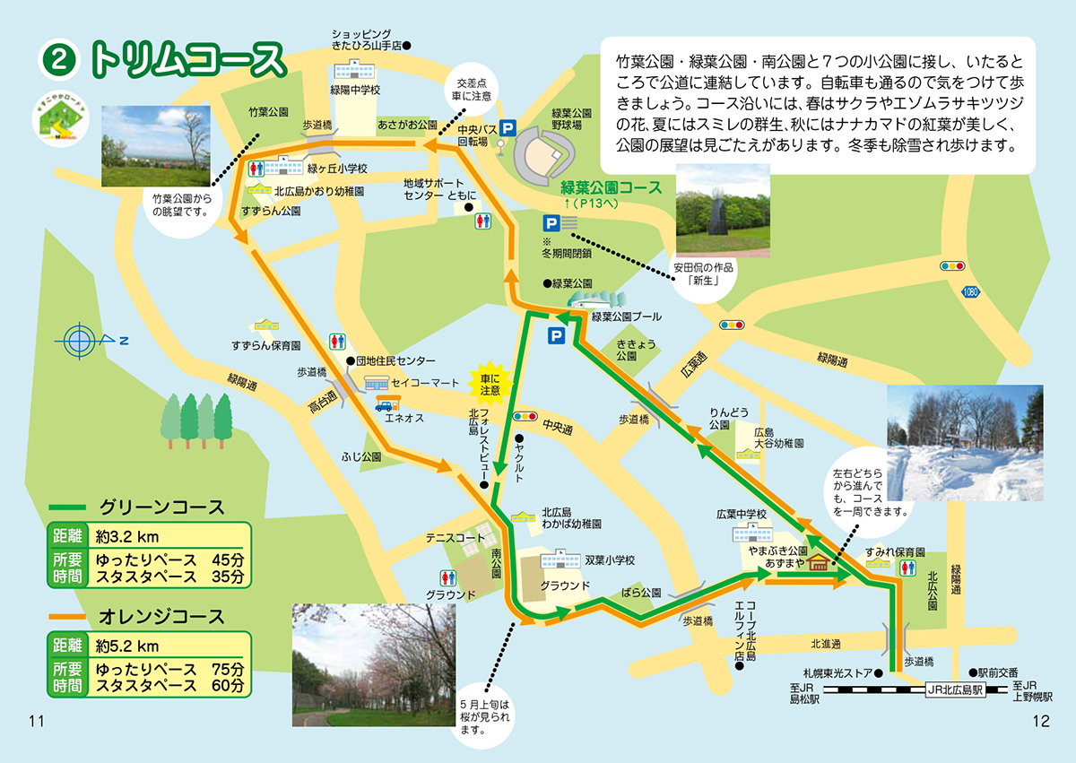 一時間超のオレンジコース、その約半分のグリーンコースという選択肢があるので体調や天候に合わせてコースを選択するというのもいいですね。