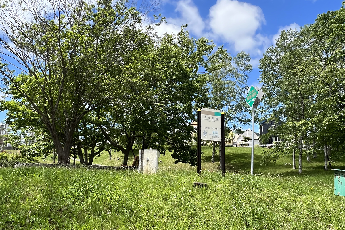 白樺緑地の階段を上ってさらに進むとふじ公園に出ました。