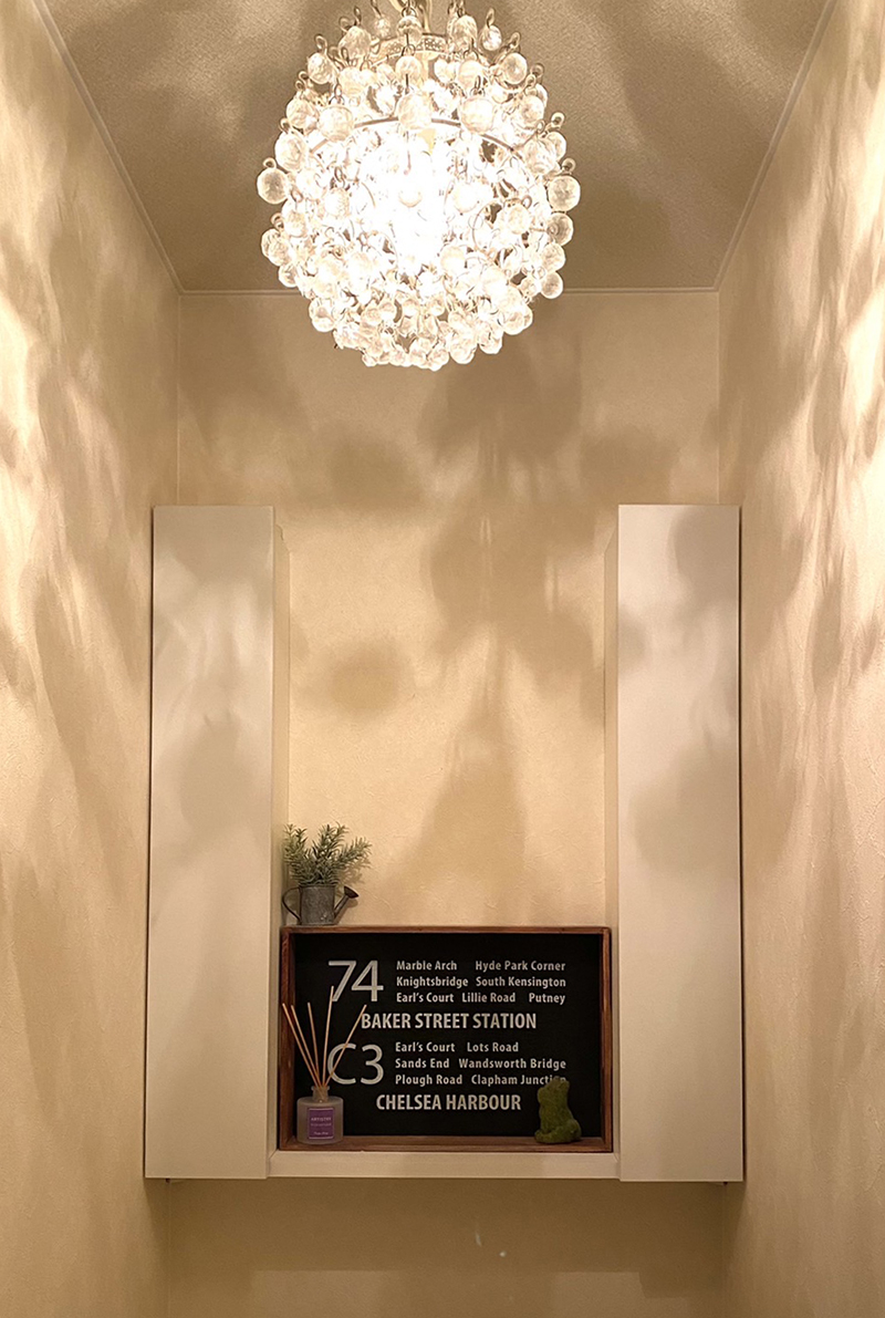 2Fトイレは壁埋め込み収納を難なくつけられたのですが、1Fトイレは壁の中に筋交いがあったので埋め込み不可という問題が発生。