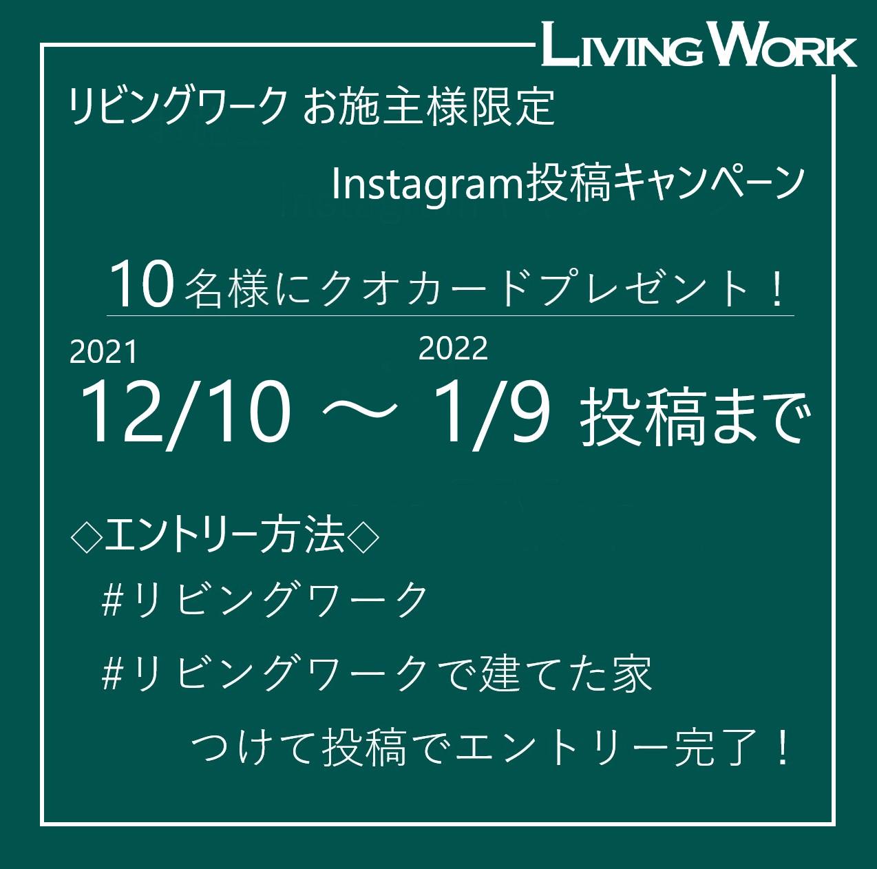 という想いから、リビングワークのお施主様限定でInstagramの投稿キャンペーンをしています。
