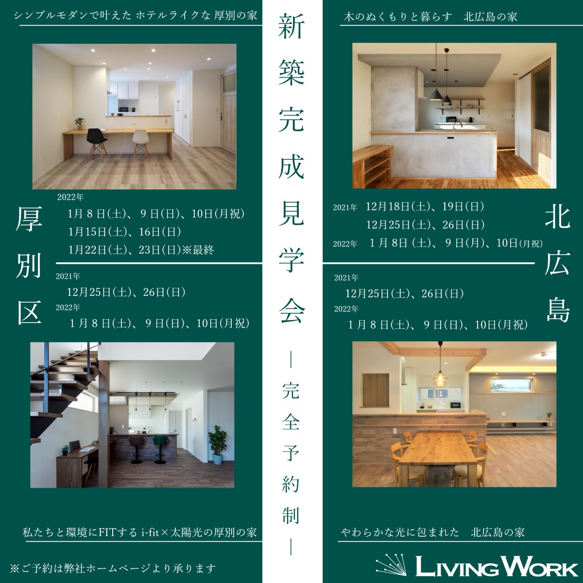 2022年1月8日から3週間限定で、厚別区にて新築完成見学会を開催いたします。