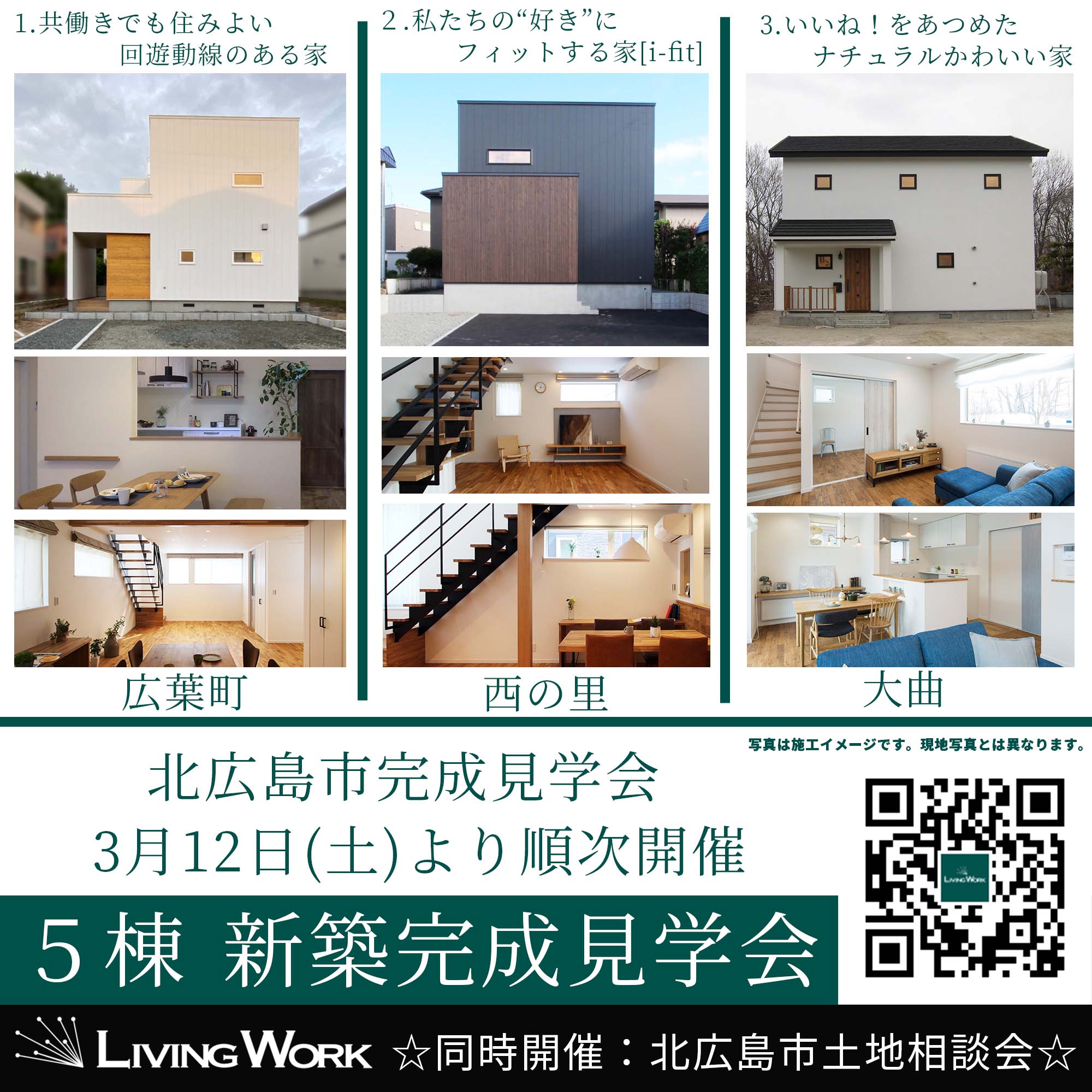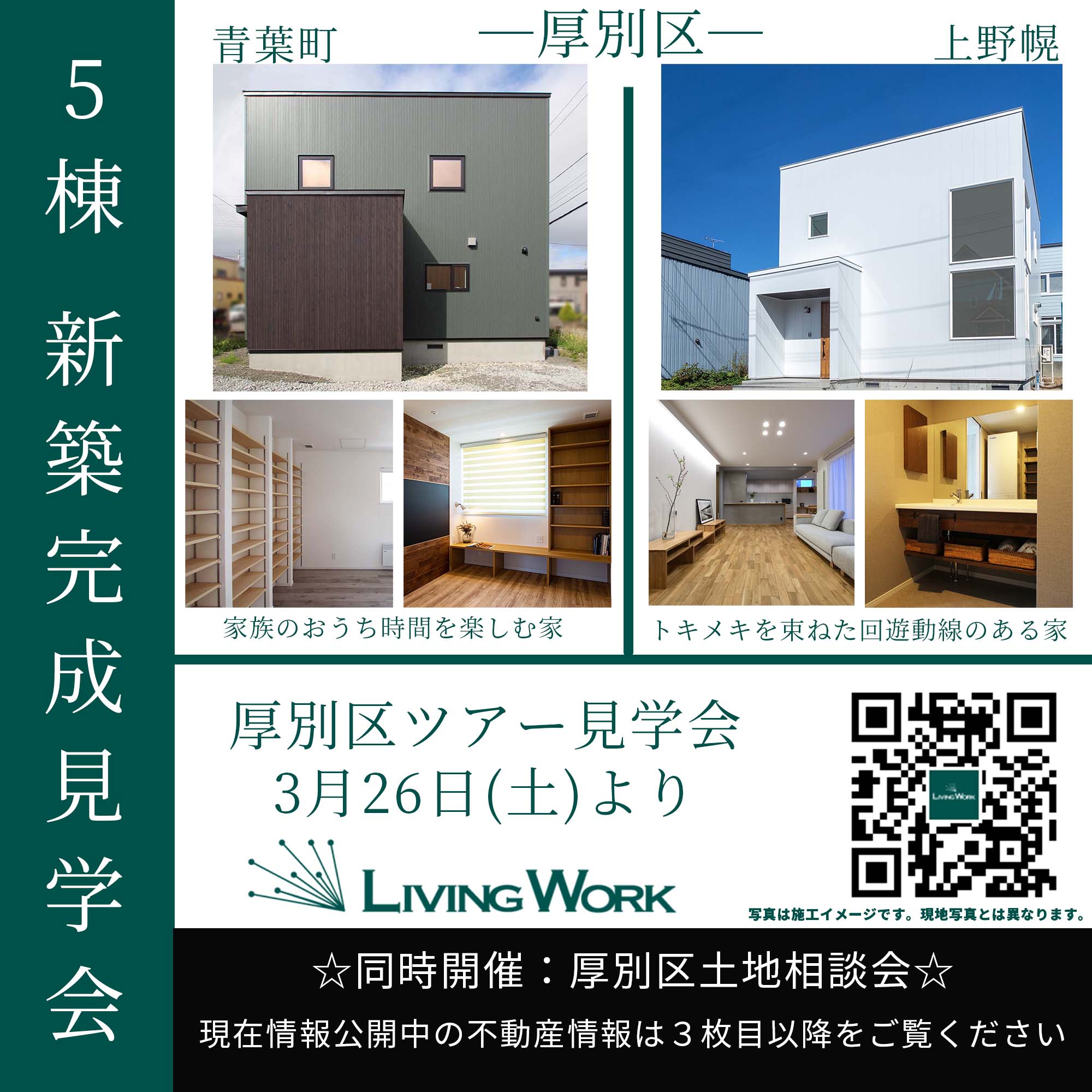 5棟の新築完成見学会を開催いたします(厚別区ツアー見学会、北広島市見学会)