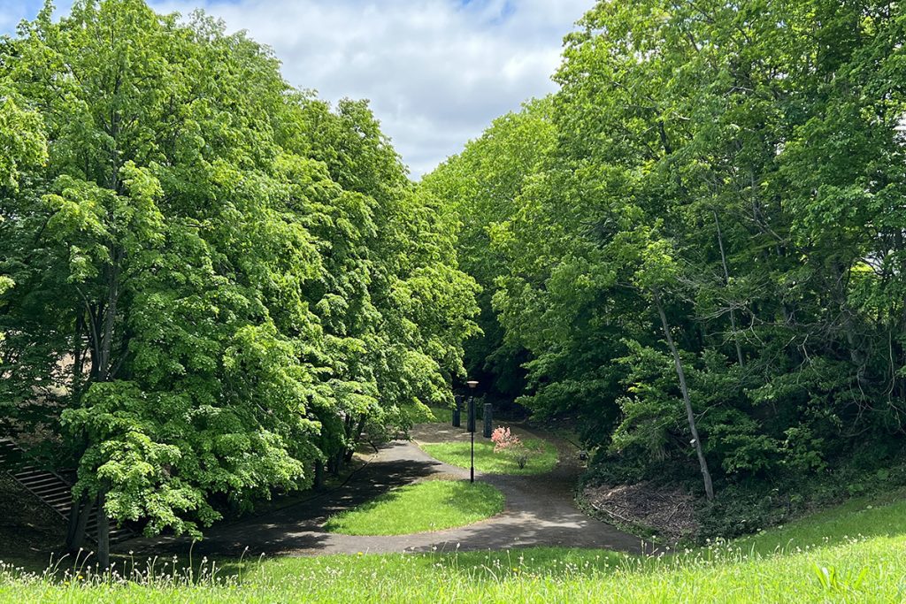 緑地が目の前にあってまるで庭のように感じられる土地での新たなスタート。