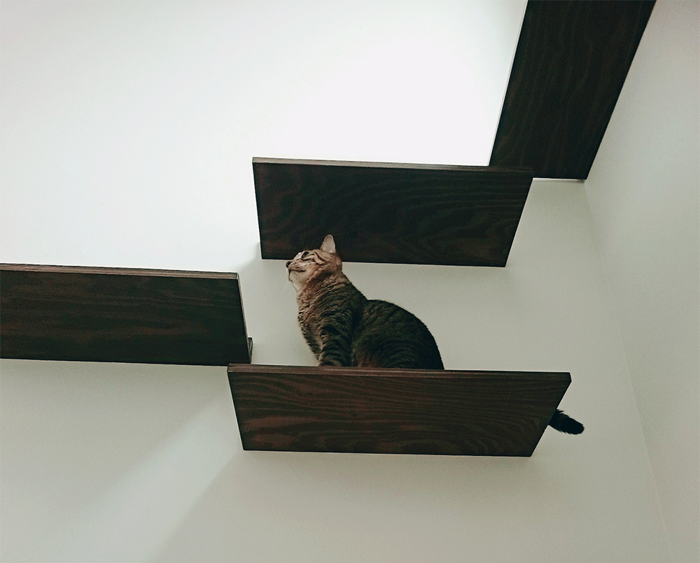 階段下にネコ用スペースがあるなど、自由設計ならではの