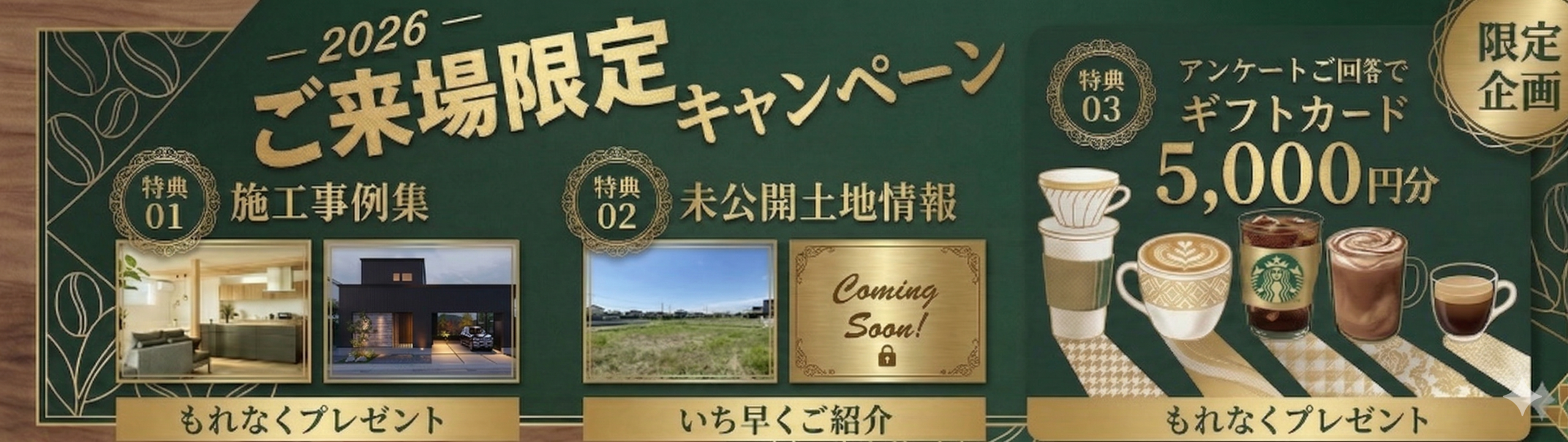 ・新規ご来場予約で5,000円分のギフトカードプレゼント!
