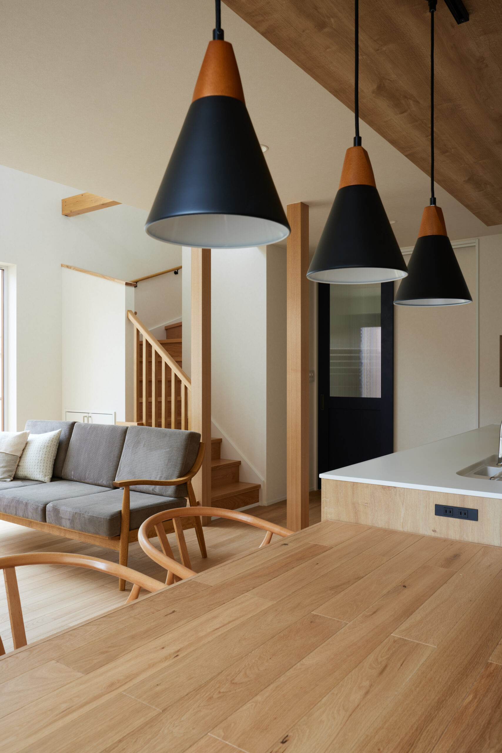 キッチンを中心に、お子様の学習を見守れる配置や、洗濯・収納を最短で結ぶ「家事楽動線」を徹底しました。