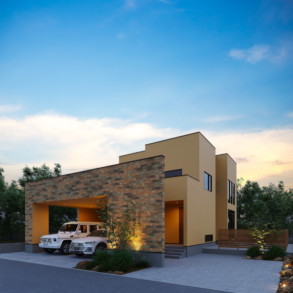 ゆとりある敷地を活かし、車庫を組み込んだ重厚感のある外観に仕上げました。