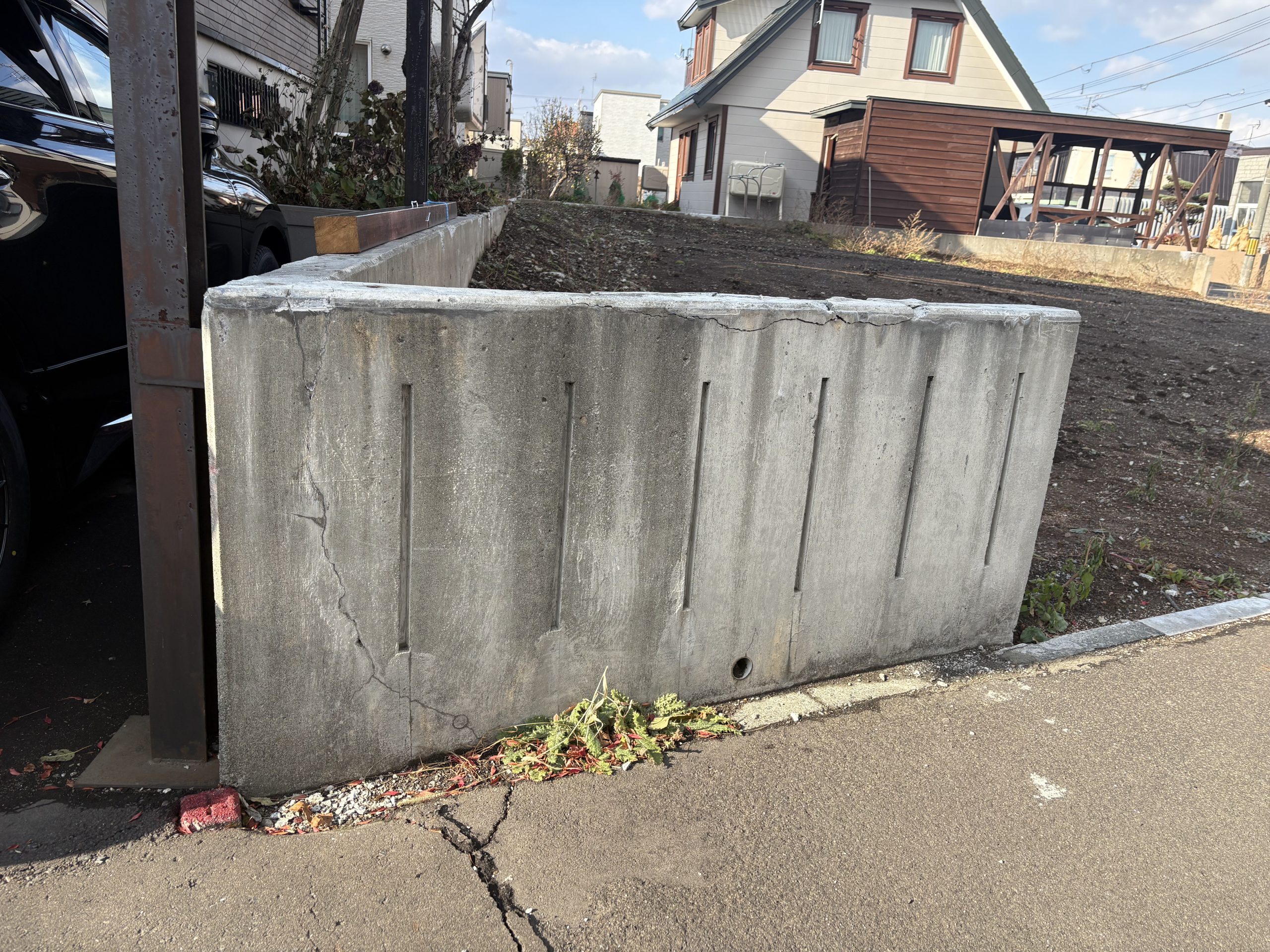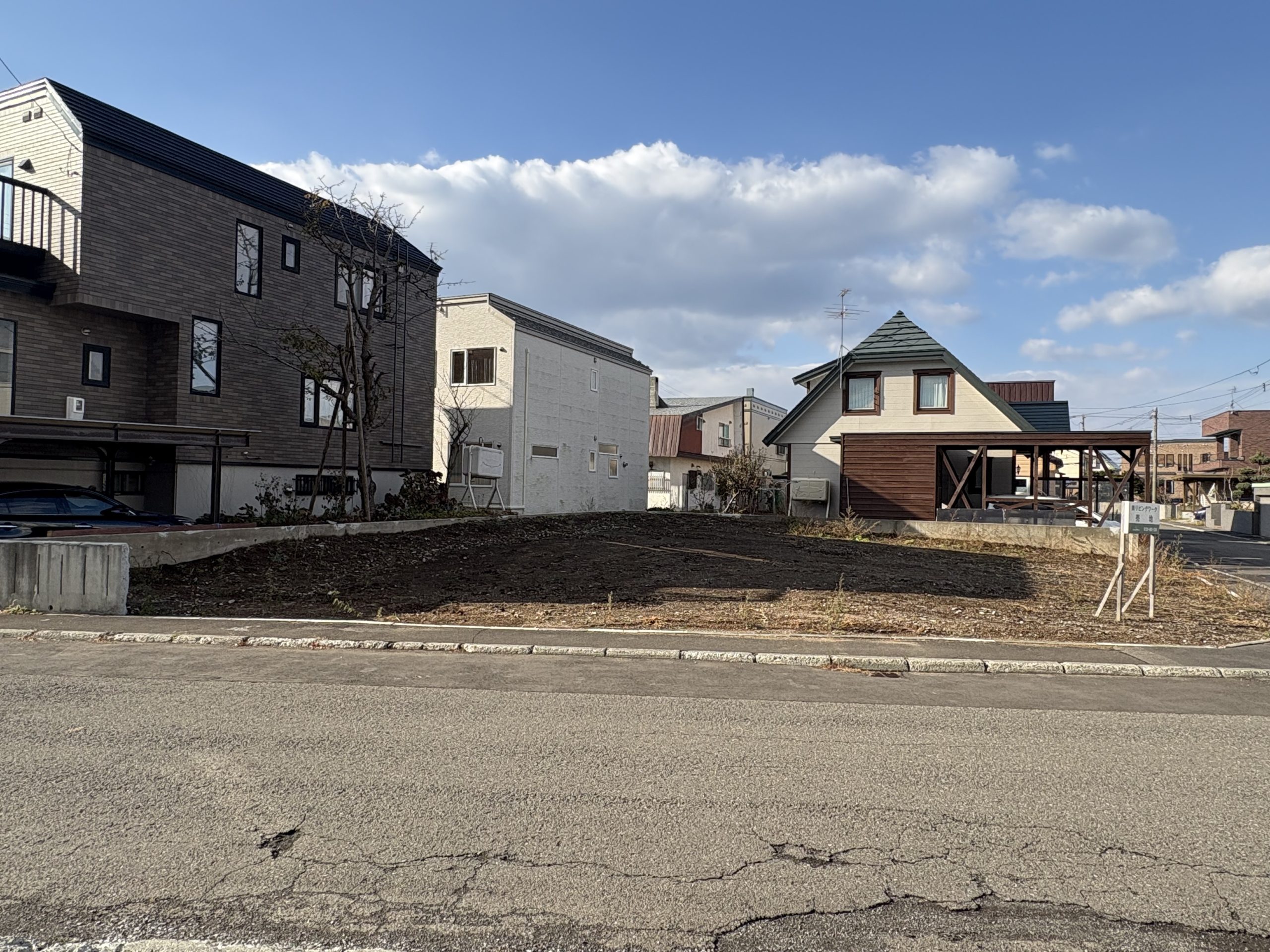 ⇒ 道路幅が広く、車庫入れ・来客対応もしやすい。設計上の余裕が生まれ、敷地全体にゆとりがもてる。