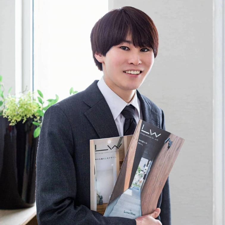 元々家具に携わる仕事をしていたが視野を住宅まで広げたいと思ったことがきっかけで入社。 色決めでは、お施主様の理想を聞くことを大切にしています。