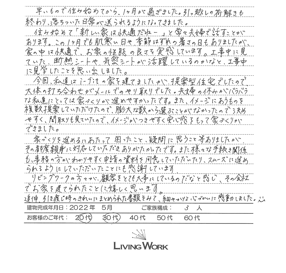 イメージがつきやすく安心感をもって家づくりが出来ました。(規格型住宅ならでは)