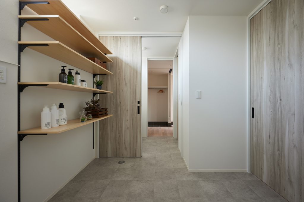 洗面とユーティリティを分け、回遊動線でつなぐことで、家事や育児の動きもスムーズに。奥様が希望した「収納多め・動きやすい家」が形になっています。