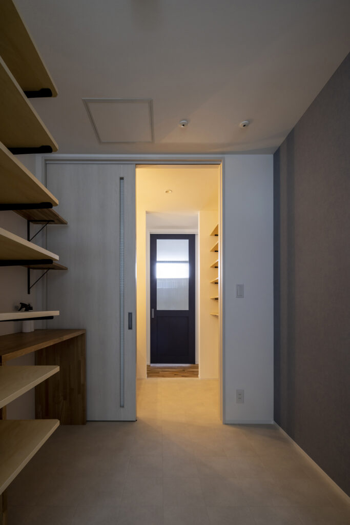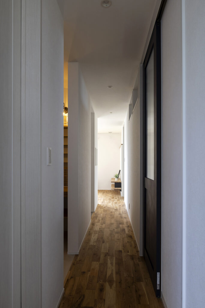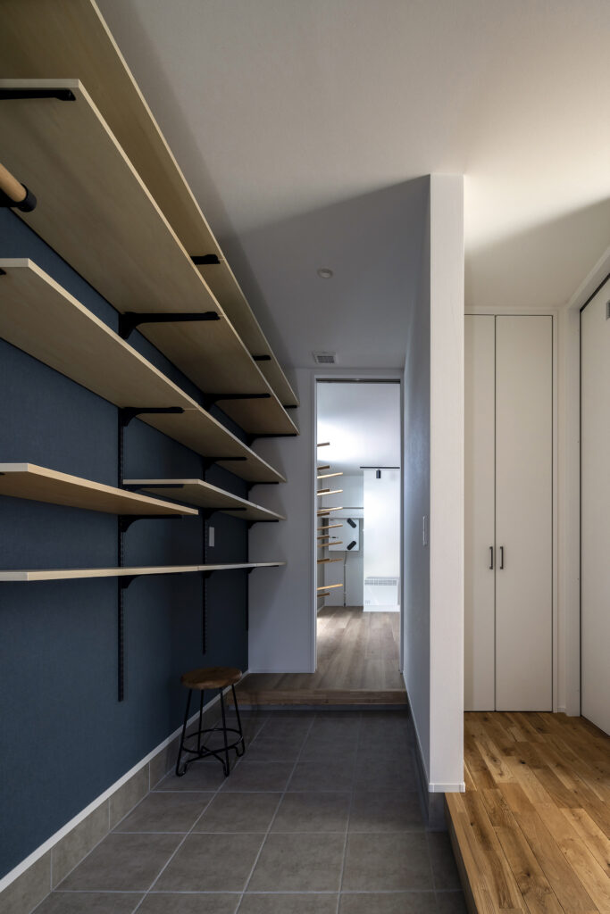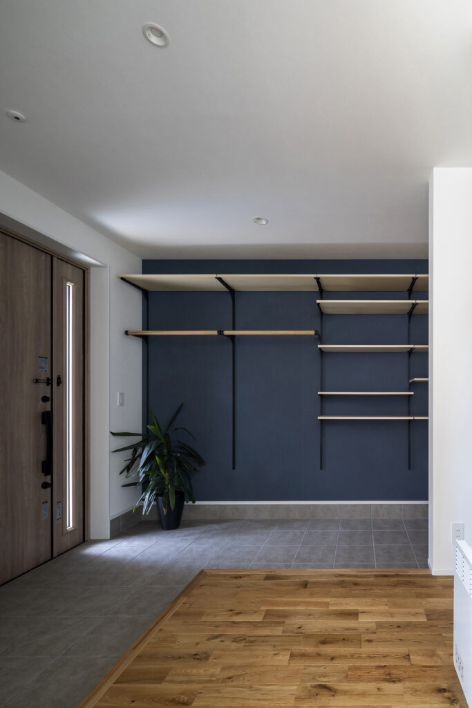 玄関が広く、土間が長いのでキャンプ道具を置いたり、スキー板を置いたり、タイヤを置いたり・・・と外の物置を必要とせず、家の中で完結できます。