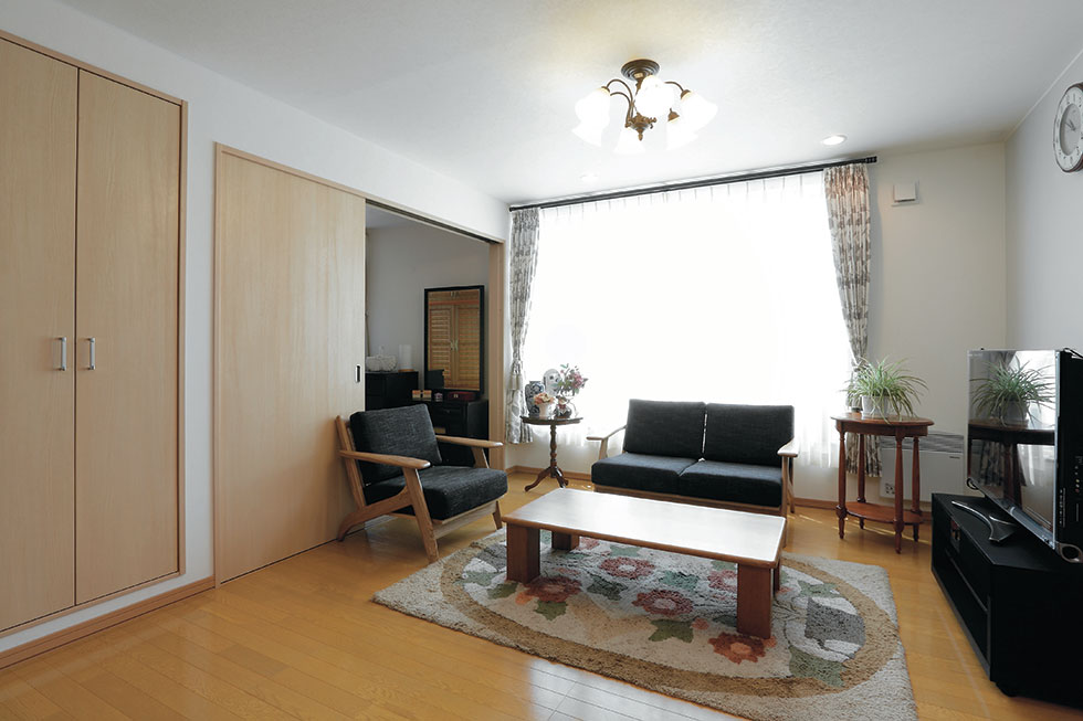 寝室はご夫妻とお母さまが使う二室を設け、お母さまの寝室の隣にトイレを配置して、動きの負担を減らす工夫もしています。愛用してきた洋だんすなどをそのまま利用し、収納スペースを減らすなど、これまでの暮らしを生かす面も。