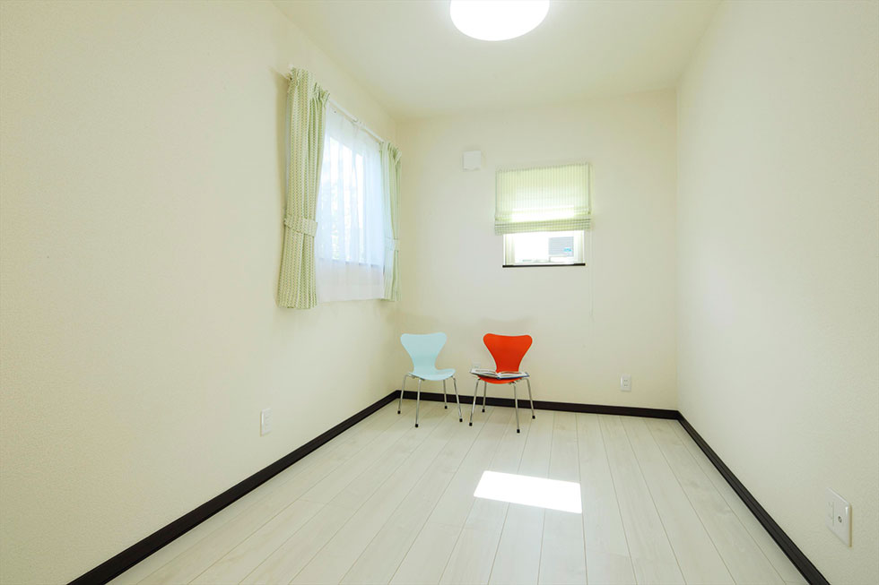 総2階に増築した空間を活用して、キッチンカウンター背面には大容量の収納だけでなく、ドアを開ければ、リビングクローゼットとしても使える洋室を設けました。「自分たちの荷物は自分たちの住まいに収めたい、親世帯に負担をかけたくない」というO様のご要望によるものです。こちらには、O様の書斎コーナーも設ける予定です。
