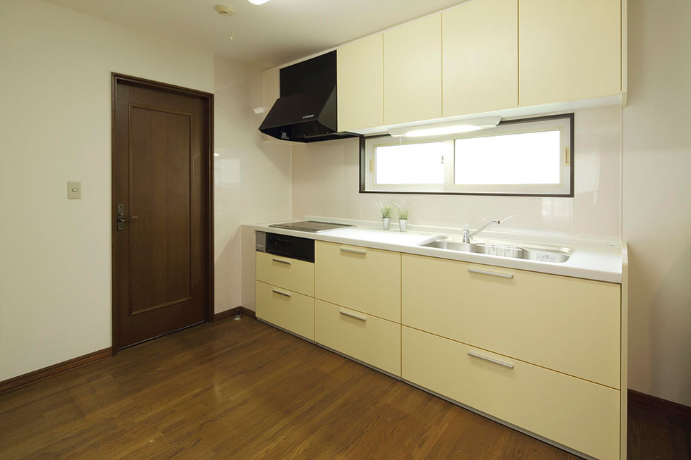 1階のご両親が居住するスペースは、玄関と階段のプラン変更と、キッチン、洗面台、トイレの入れ替えをしました。ずっと新しいキッチンに替えたいと考えていたというお母さまも、使い勝手の良さに満足されています。