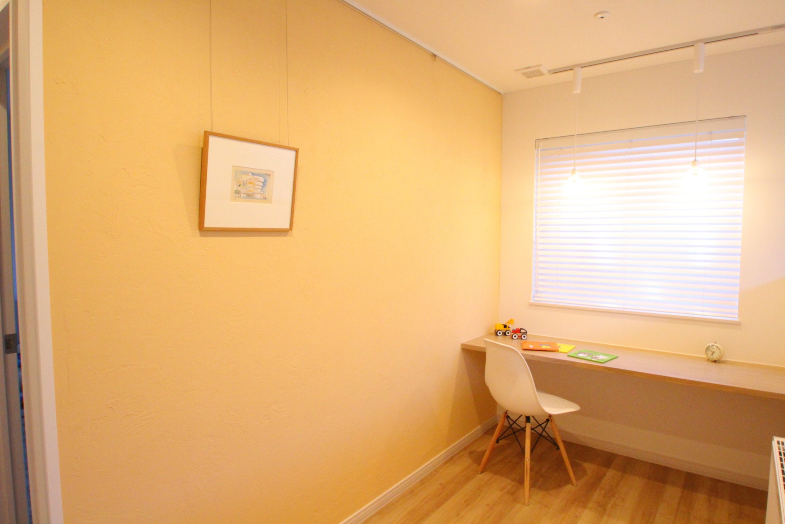 イエローカラーの塗り壁を1面に使用した子ども部屋