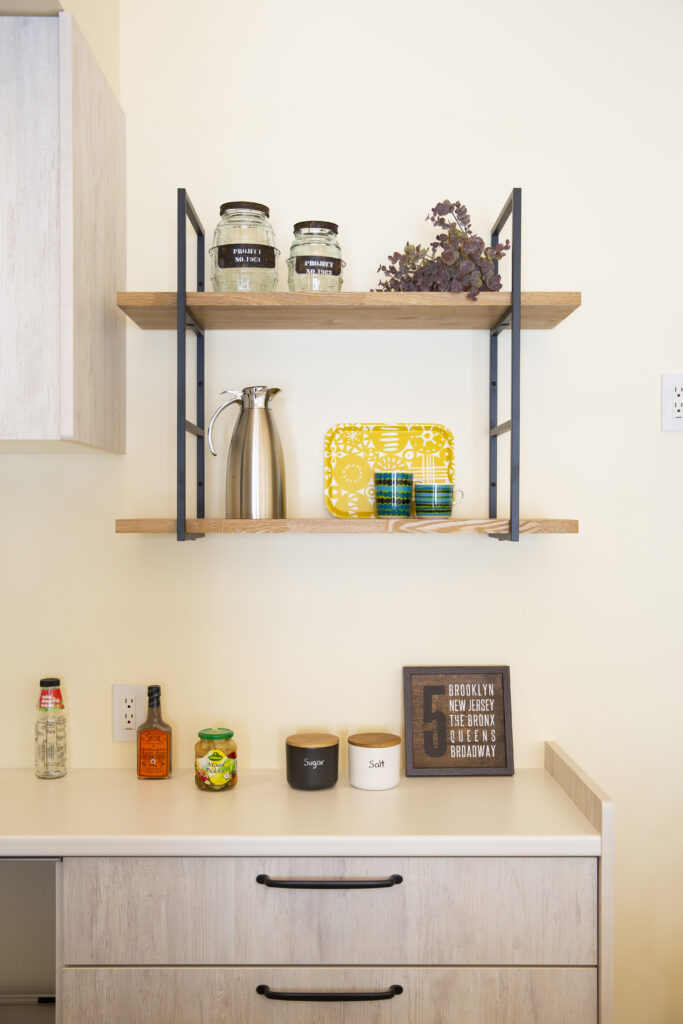 おふたりは仕事から帰宅後、いっしょに台所に立つことも多く、広さのある使いやすい空間をご希望されました。キッチン台と背面収納の幅は112cmとワイドな設計。二人並んでもゆとりのあるキッチンでお料理がますます楽しくなりそうです。