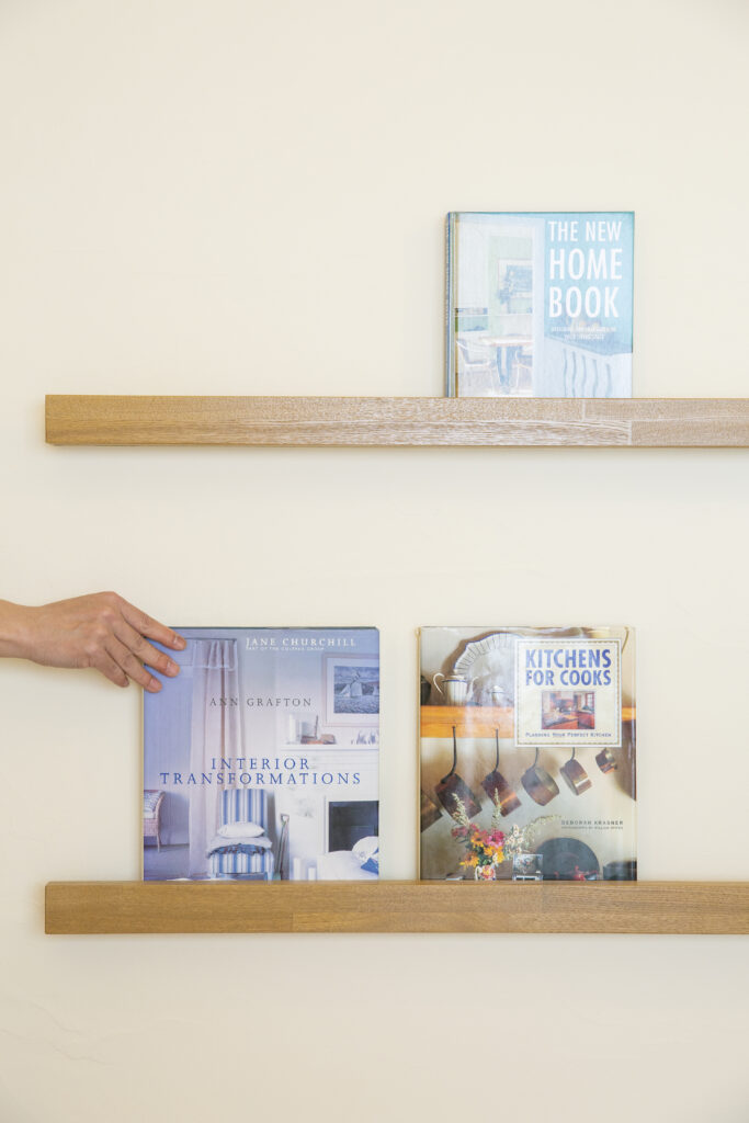 ダイニングの壁面には、たくさんお持ちだという料理本を収納するブック・ラックもご用意。