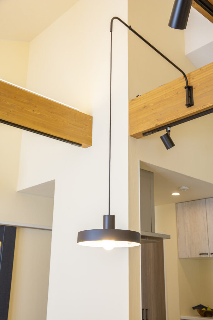 ダイニングの上には、flameフレイムのハンガーブラケット