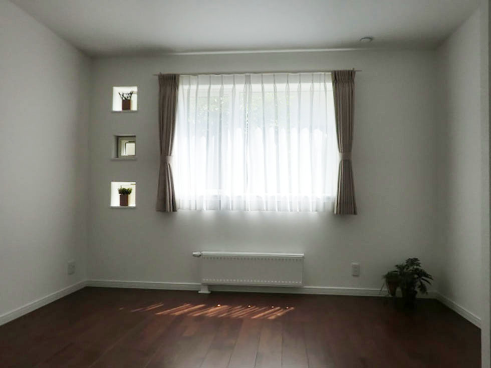 家のなかを素敵に飾るニッチも設けました。リビングの一角には、インテリア雑貨をアレンジできるカウンターも造作しています。