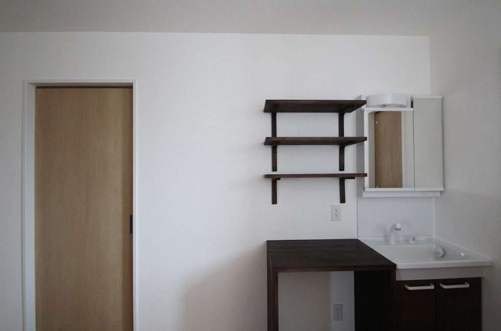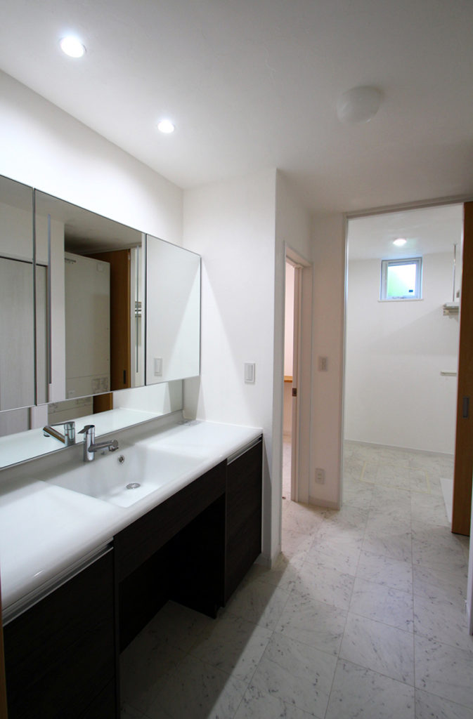 洗面室の奥にはユーティリティーやウォークインクローゼットがあり、洗面やお風呂とクローゼットが行き来しやすいことで、着替えもしやすく便利な動線です。