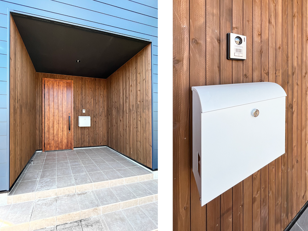 外観のアクセントには白いポストを。
