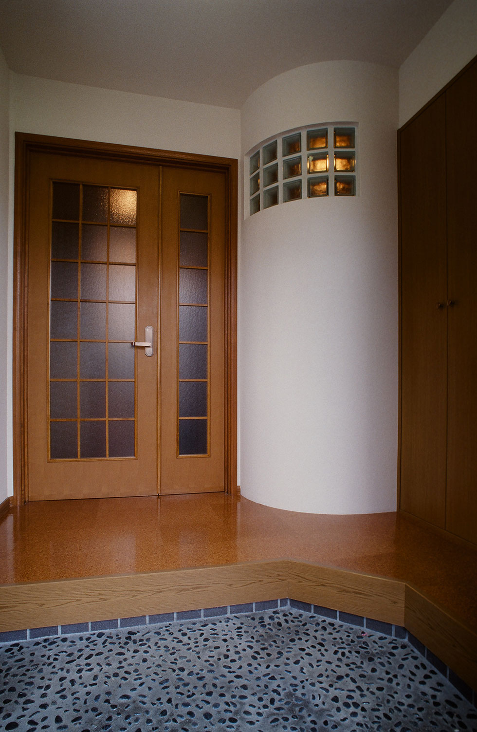 玄関にはシューズボックスを造作しました。曲線を描いた壁の向こう側はトイレになっていますが、そうとは思えないおしゃれなデザインに。各所に開口部を設けるなどして明るく広々と生まれ変わったSさま邸、「わが家っていいなあ、と幸せな気持ちが湧いてきますね。まるで家を2回新築したような、得した気分です」と、非常にうれしいご感想をいただきました。