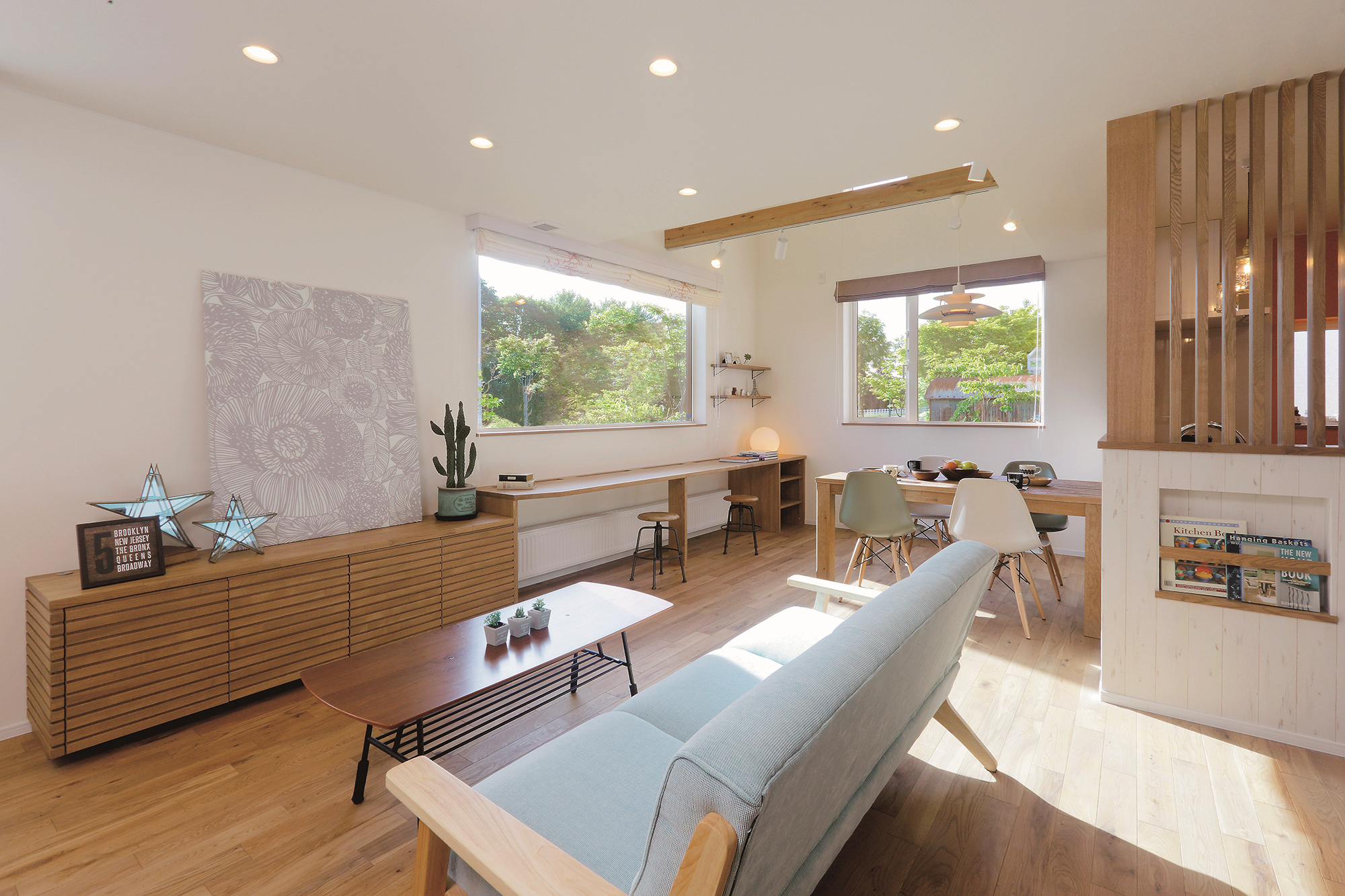このモデルハウスは、『子育てが楽しくなる、緑あふれるあたたかな暮らし』をテーマに、『北欧スタイル』をインテリアに取り入れたお宅です。