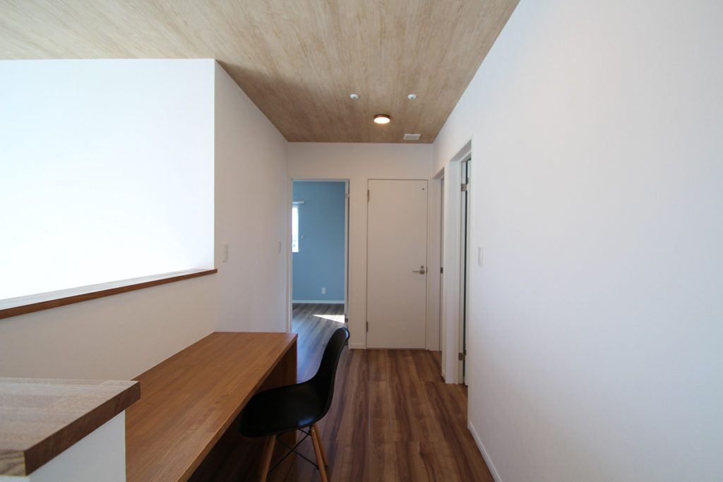 2階ホールにも造作カウンターがあり、書斎やワークスペースとしても使えます。