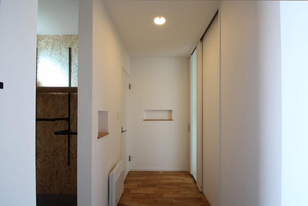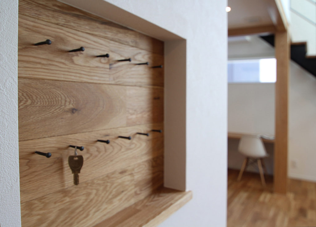 △玄関から入るとリビングドアの横には家族分のキーがかけられるニッチがあります。