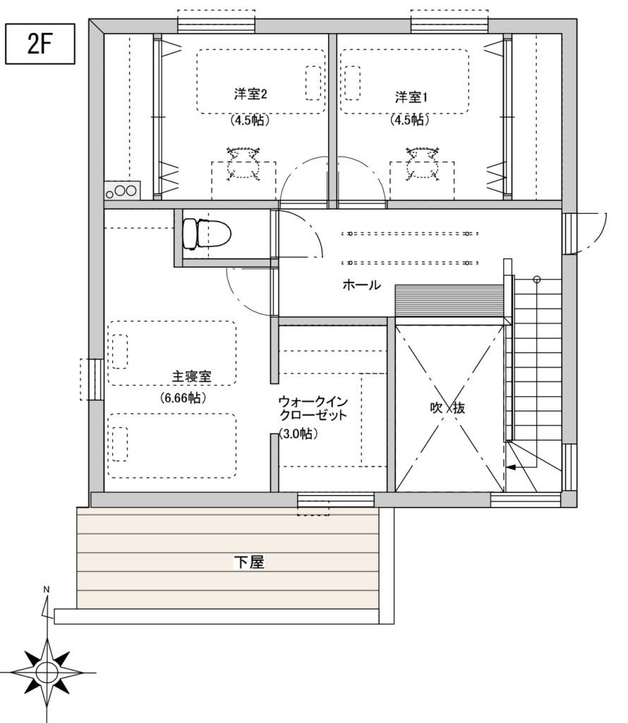 1階にも2階にもそれぞれトイレがあり、作り付けの収納もあるので便利で快適な空間に。